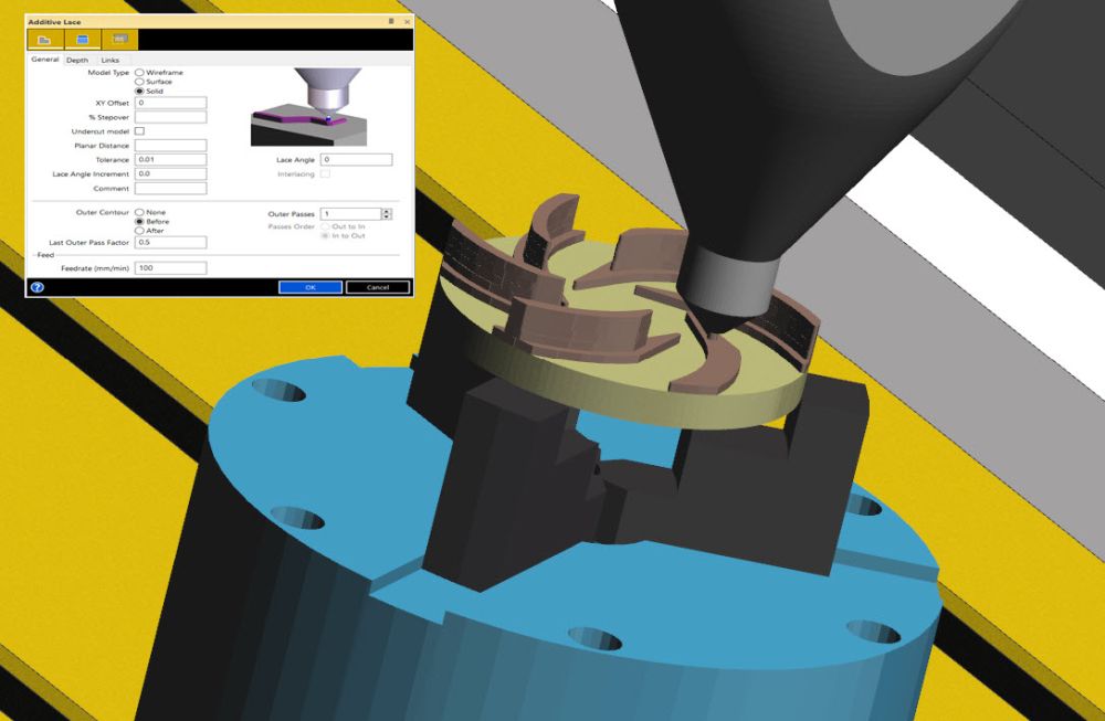 As EDGECAM 2019 R1 now offers full ToolStore support for Additive Manufacturing, shapes can be built using almost any milling cycle…including advanced functions such as rotary and 5-axis simultaneous machining. The new Additive Lace cycle is designed to construct geometry on a layer-by-layer basis, depositing a continuous molten bead of material which adheres to the parent material.
