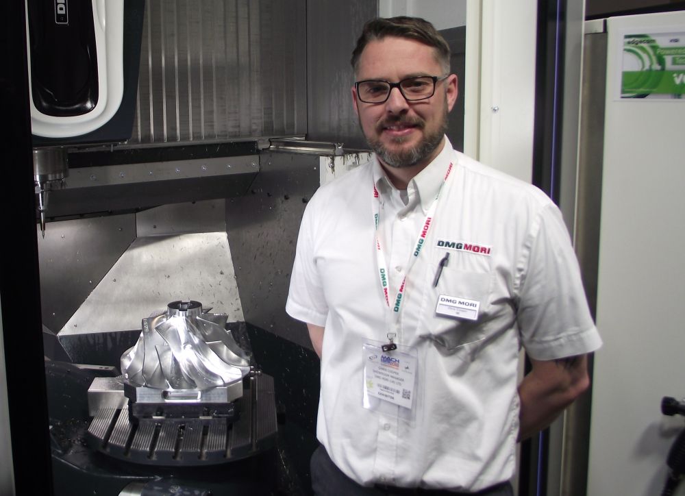 DMG Mori ran EDGECAM on their DMU 60 Evo Linear machine with a 5-axis simultaneous program, and an NTX 2000 for mill/turning operations. UK Showroom Manager Christopher Cooper says MACH was the perfect venue to highlight their top level engineering expertise and their machine tools.
