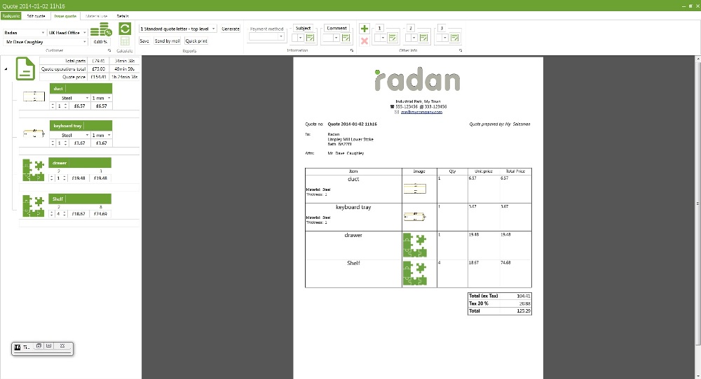 RADAN will launch its universal quoting software, Radquote, on stand 4361 in Hall 4 at the NEC in Birmingham, between April 7 - 11. This new module generates quotes for sheet metal, tube, bar and purchased parts. It provides a full breakdown of costs, and allows each cost area to be altered, giving complete flexibility when negotiating. It integrates seamlessly into RADAN’s manufacturing solutions.