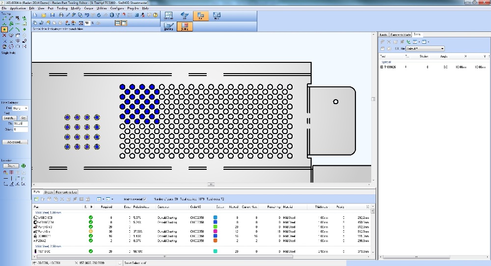 Support for cluster tools means they can now simply be added to the master tool file, and RADAN automatically ensures the best arrangements of cluster tools to punch a specific pattern. “Automatic tooling recognises the geometry and applies the right tool or combination of tools to punch pattern.”
